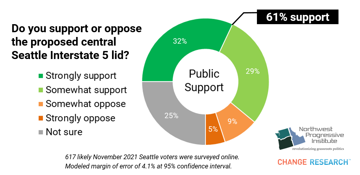 Public support is lining up for the vision. Scientific polling by Northwest Progressive Institute in late 2021 found 61% of Seattleites support this vision. This is a groundbreaking achievement and never before have we had such a clear picture of public sentiment. This community enthusiasm gives us the power to continue moving forward.
