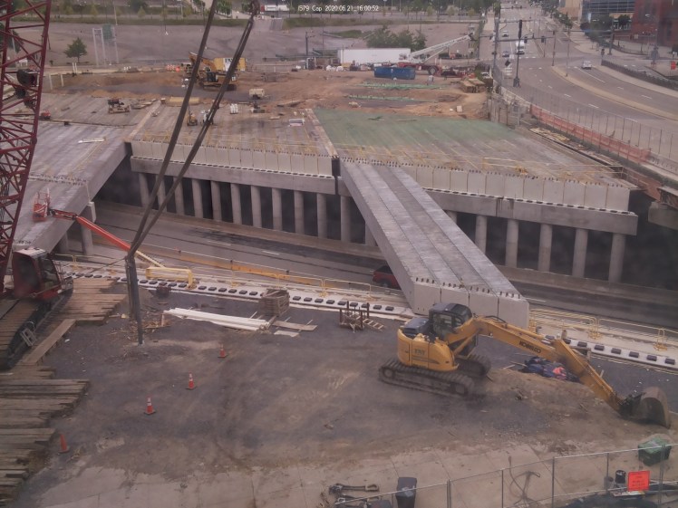 A new three-acre park is being built on top of I-579, the freeway that divides downtown Pittsburgh, and despite the pandemic, it’s on schedule to open in November 2021!