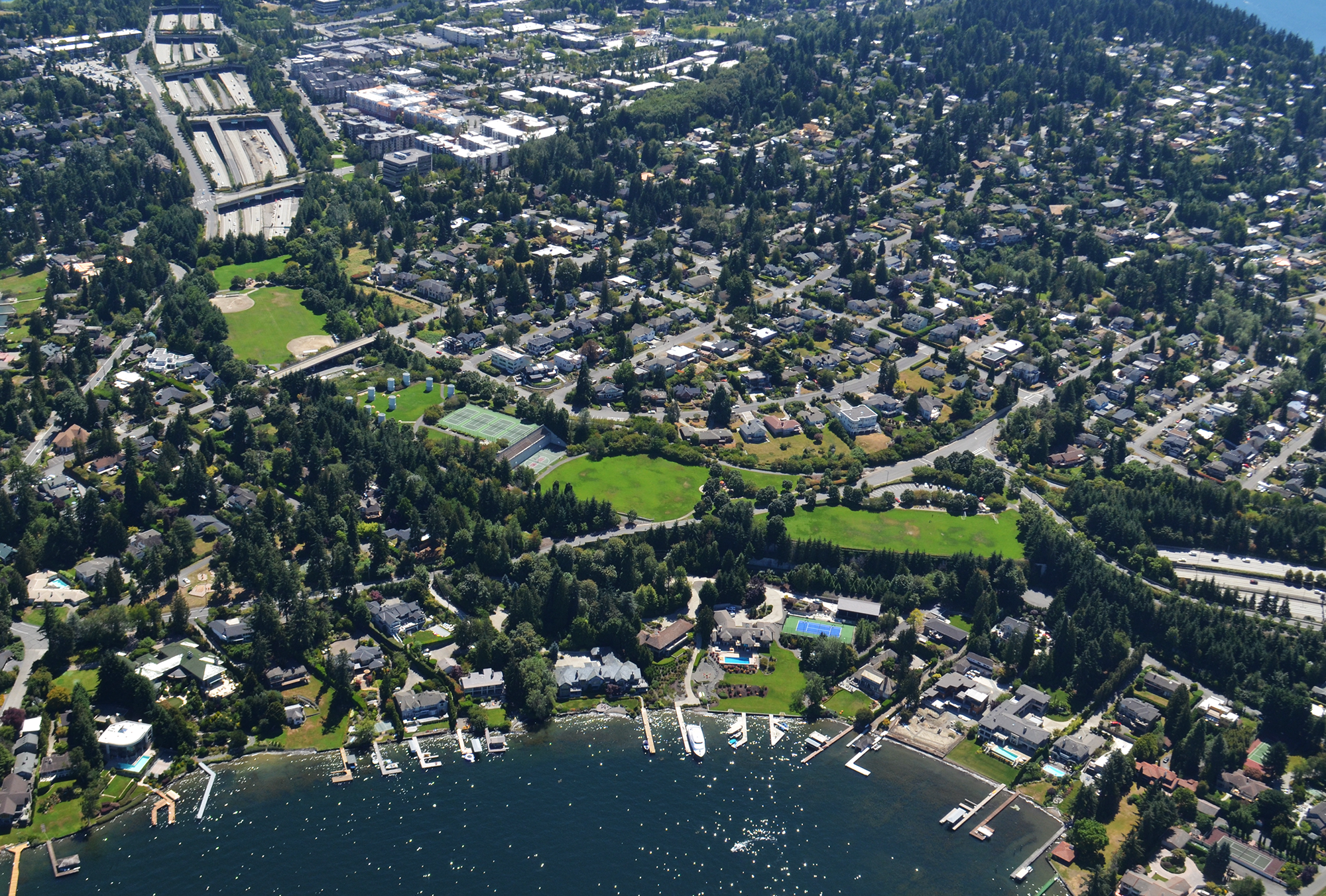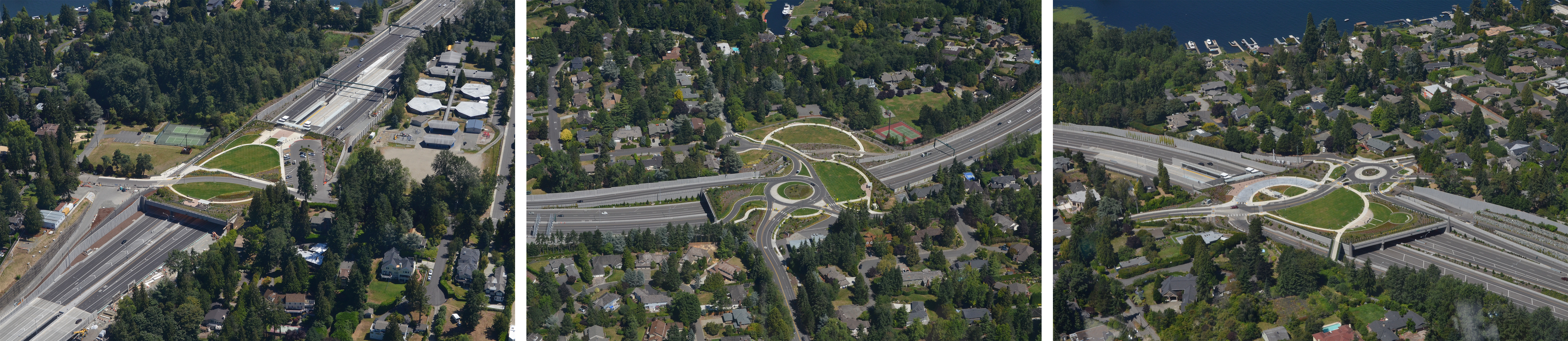Most recently, in 2015 the Washington State Department of Transportation (WSDOT) completed three new lids over the rebuilt section of State Route 520 on the east side of Lake Washington. Running through the residential enclaves of Medina, Hunts Point, and Clyde Hill, the three lids are primarily widened overpasses on three north-south streets. All of them have unprogrammed open space primarily defined by lawns and two of them connect transit passengers to bus stops below within the freeway median. The three projects total about 6.1 acres.